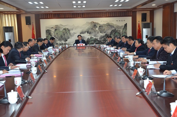 12月18日上午,市七届人大二次会议预备会议结束后,大会主席团举行第一次会议。会议由市委书记、市人大常委会主任谭君铁主持。
