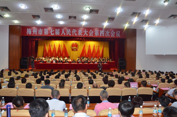 4月23日下午,梅州市第七届人民代表大会第四次会议在市委礼堂开幕。