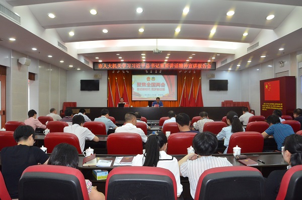 5月18日上午,市人大常委会机关举行学习习近平总书记重要讲话精神宣讲报告会,邀请全国人大代表、梅县东山中学教师李杏玲为市人大机关在职及离退休干部职工作报告。