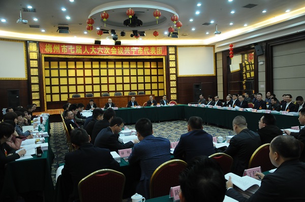 2月28日下午,市委书记陈敏到梅州市七届人大六次会议兴宁市代表团,与代表们一起审议《政府工作报告》。