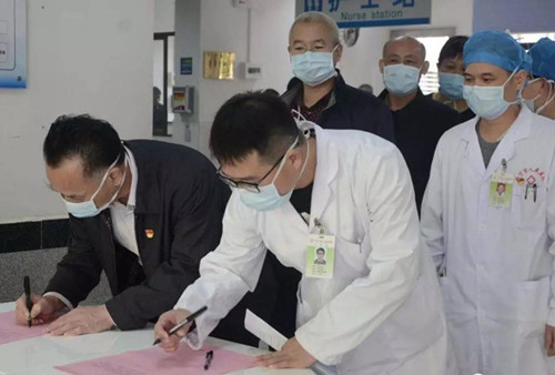 梅州市人大代表、兴宁市人民医院院长陈国权身先士卒、勇于担当,带头在“加入防控新型冠状病毒感染工作一线的志愿书”上签名,团结带领全院医护人员奋战在抗击疫情最前线,不分昼夜、连续战斗、从未休假,同时迅速抽调成立59人组成的抗疫医疗队,赴兴宁新冠肺炎定点救治医院市第五人民医院(水口镇中心卫生院)参加防疫、救治工作。