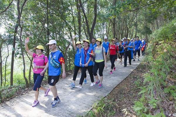 森林防火志愿者服务队在梅城百岁山参加徒步(林翔 摄)
