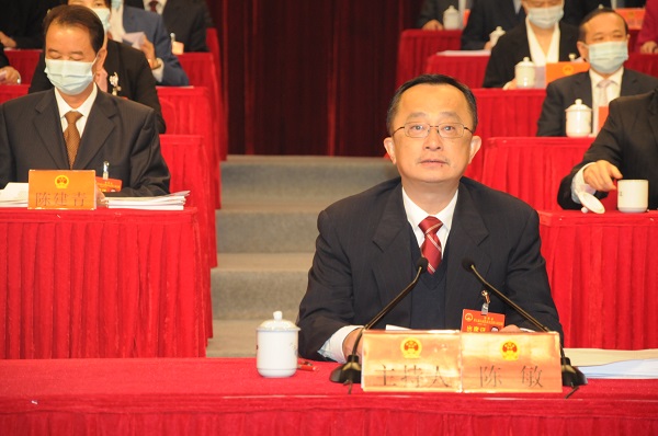 2月1日上午,梅州市第七届人民代表大会第八次会议在梅城亮胜客家艺术中心开幕。市委书记、大会主席团常务主席陈敏主持开幕大会。市长张爱军向大会作《政府工作报告》。