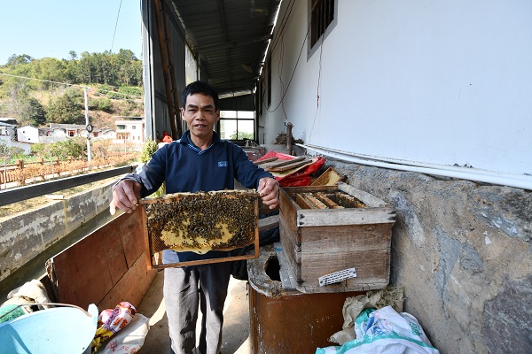 ↑在驻村工作队鼓励下,李烈发通过养蜂等种养项目实现增收。