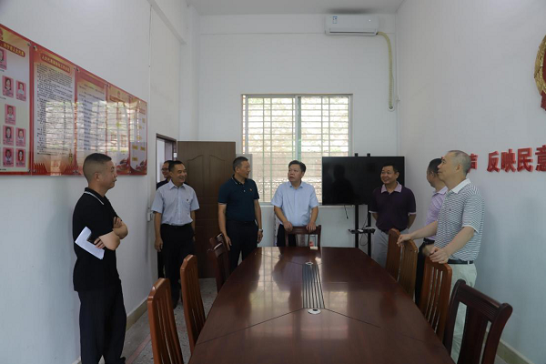▲兴宁市人大常委会领导检查联络站建设运行情况