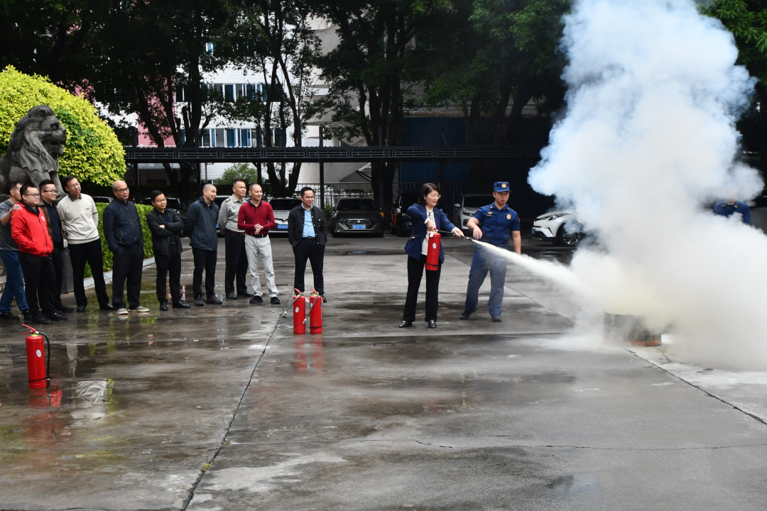 培训会后,全体干部职工到机关大楼前开展消防实操演练。消防队员为大家讲解了消防器材的使用方法和注意事项,现场演示了如何正确操作干粉灭火器和佩戴防毒面具。在场的干部职工积极参与实操演练,在亲身体验中学习掌握扑救火灾、避险逃生的技能。