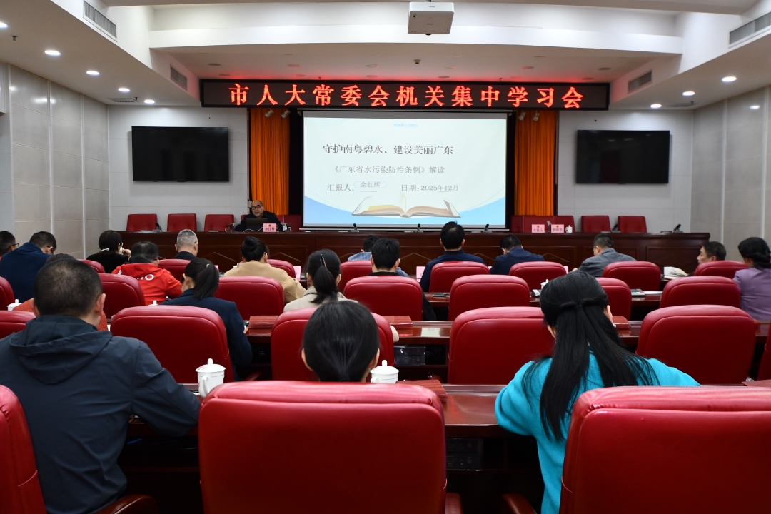 12月18日,市人大常委会机关举行集中学习日活动,由市人大常委会城乡建设环境资源工委主任余红辉作《广东省水污染防治条例》(以下简称《条例》)专题辅导讲座。机关全体干部职工参加活动。