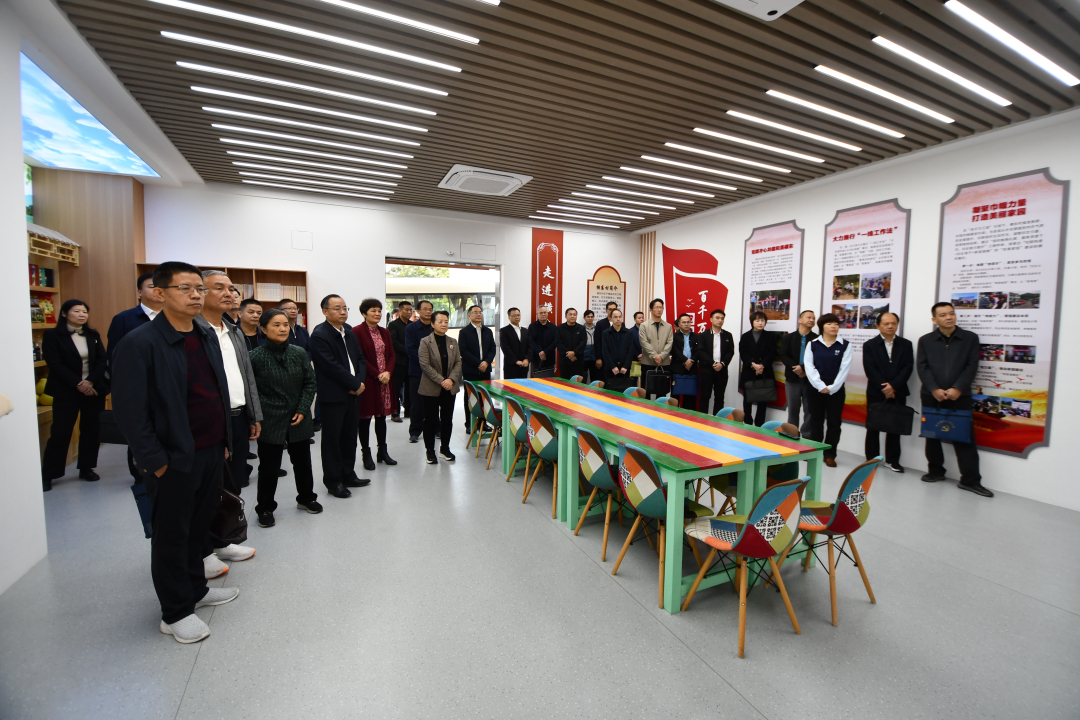 12月24日,梅州市加快现代化产业体系建设(农文旅产业融合发展)专场会议在梅县区松口镇横东村召开。图为与会人员参观考察丙雁松农文旅产业融合发展人大代表联络站建设情况。