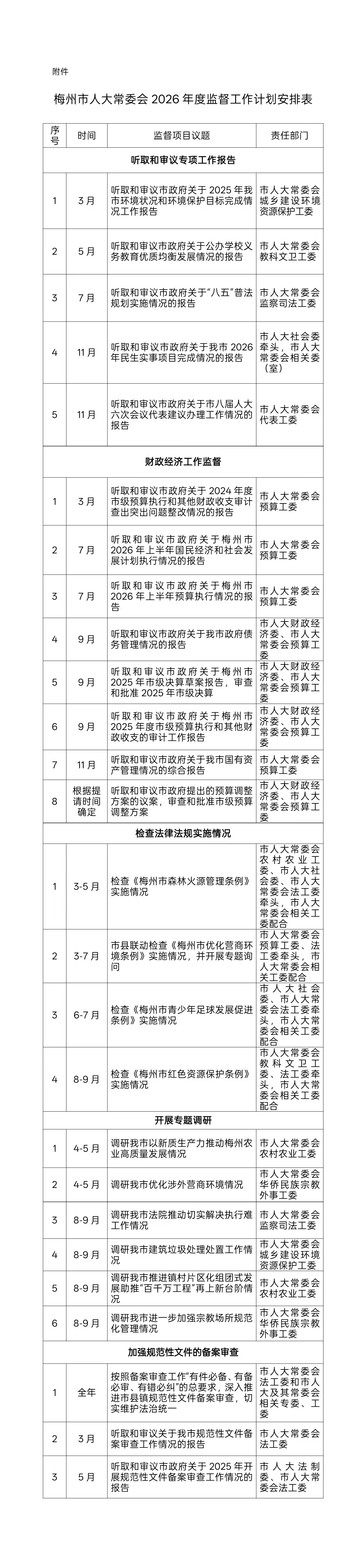 附件:梅州市人大常委会2026年度监督工作计划安排表