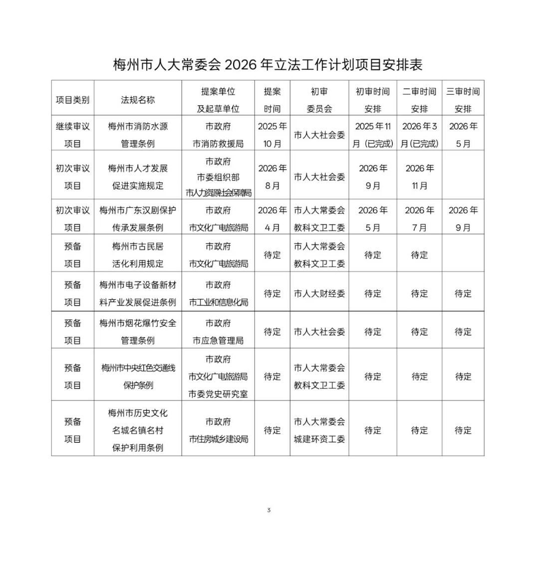 梅州市人大常委会2026年立法工作计划